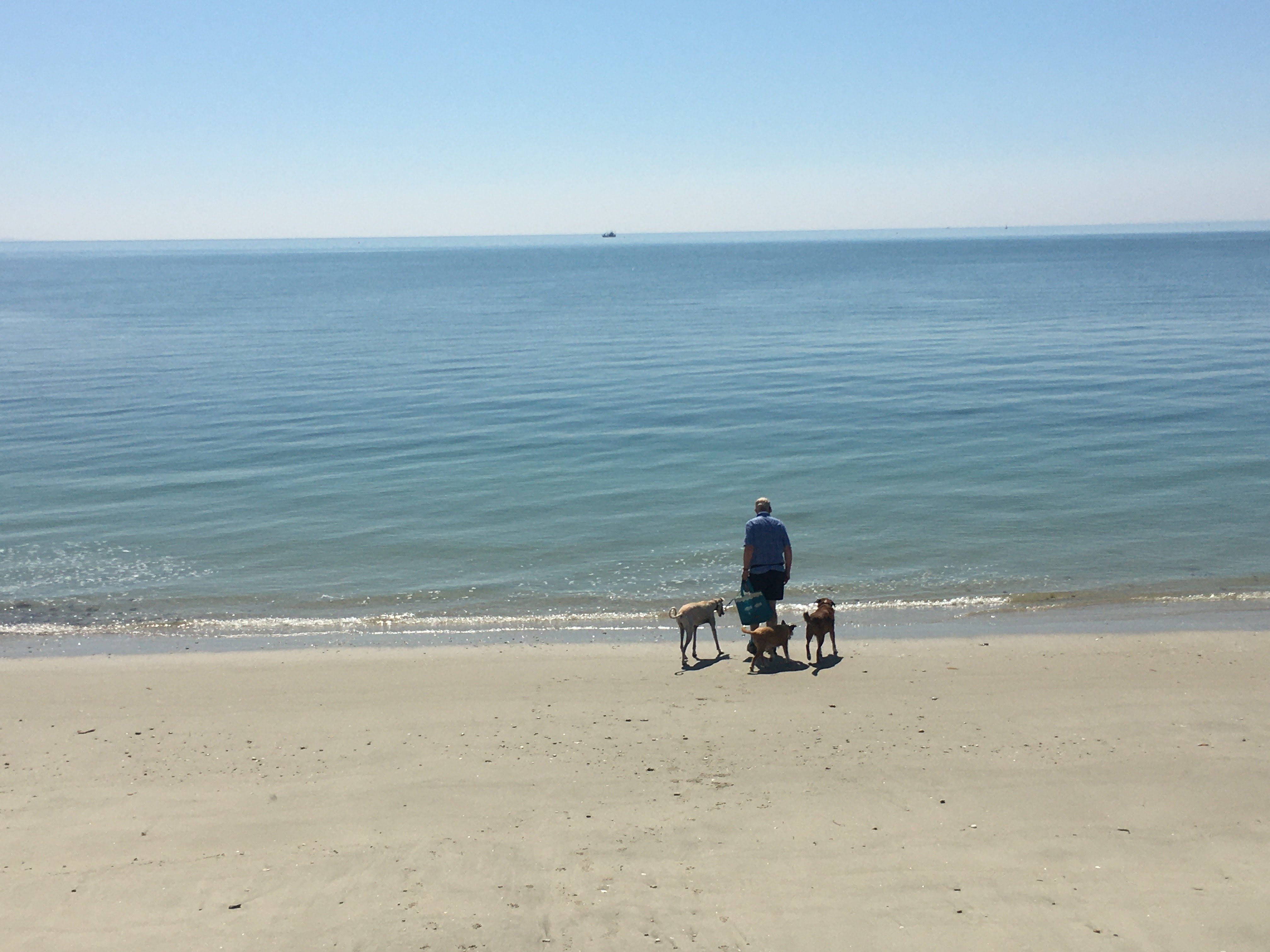 I haven’t been around for a while, I know. Sorry about that. The weather had been nice, so the SO and I decided to grab the opportunity to get away for a few days to the Brittany coast. Only about 90 minutes from here, but it was a nice change of scene for us and the dogs. We have some lovely friends who have a gîte, as well as a big daft dog who loves one of ours to bits, so it was a bit of no-brainer. We took our hairy idiots to the beach, which for one at least was his first experience of the sea, as far as we know. He wasn’t keen, but then, he’s not a big fan of getting his feet wet generally… wuss.